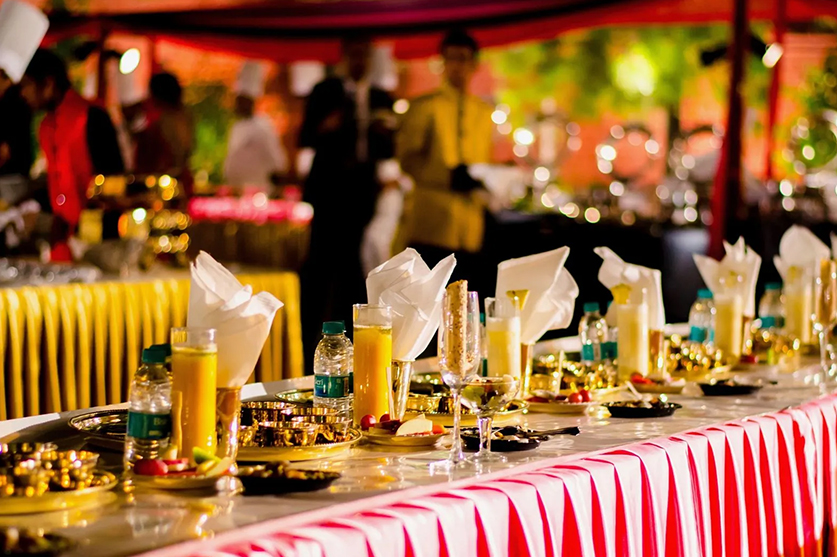 Whether you envision a regal sit-down dinner, an interactive live food station, or a fusion menu that blends traditional recipes with contemporary flair, our team ensures every detail is thoughtfully curated. From handcrafted hors d’oeuvres and signature cocktails to indulgent desserts and late-night bites, we focus on creating culinary moments that leave your guests talking long after the last toast.