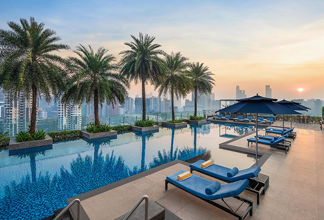 A beachfront 5-star hotel perfect for glamorous weddings with sunset backdrops and modern ballrooms.